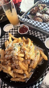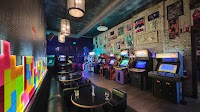 Large industrial space with a selection of American bar food, vintage arcade games & cocktails.