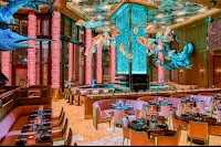 Chic, luxurious Asian restaurant and nightspot with surreal fish lamps designed by Frank Gehry.
